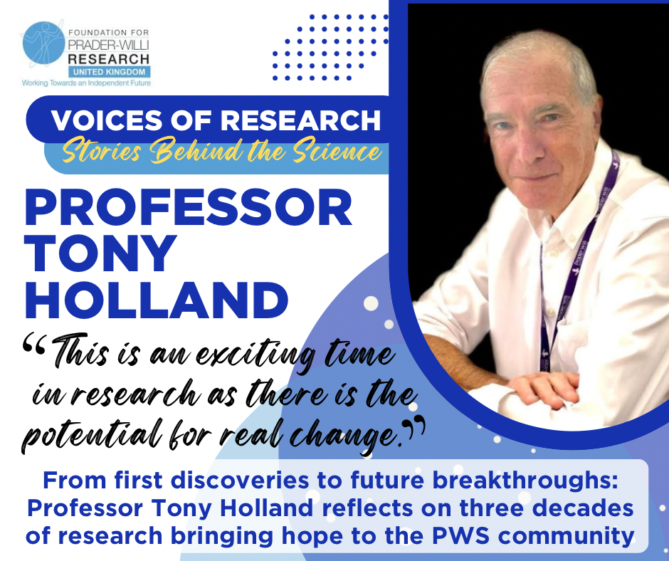 We are deeply grateful to Professor Tony Holland for sharing his reflections on over 30 years of research into Prader-Willi syndrome. Tony’s work has been instrumental in shaping our understanding of PWS—from early studies exploring hyperphagia to groundbreaking insights into brain function and mental health risks. His dedication, alongside his colleagues and the many families who have taken part in research, has paved the way for advances that bring hope for better treatments and care. We are honoured to share his personal perspective on this remarkable journey.