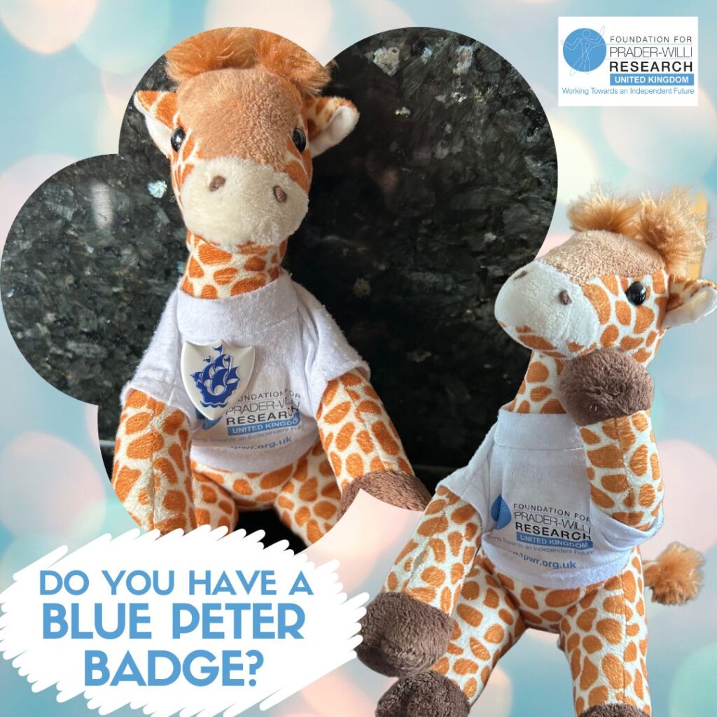 Here is where you could bring PWS into it- you could use your submission to raise awareness of PWS and FPWR UK. If you can, write explaining about PWS and the challenges you face. Alternatively, you could draw PeeWee and explain he is the beloved FPWR UK mascot. We also have a Colouring Page PeeWee at the bottom of the page and you’re welcome to use this – maybe colour, paint or decorate him so it’s something everyone can do. When you are done you can apply online using My Blue Peter at https://mybluepeter.bbcstudios.com/#/ or you can post your application to:
