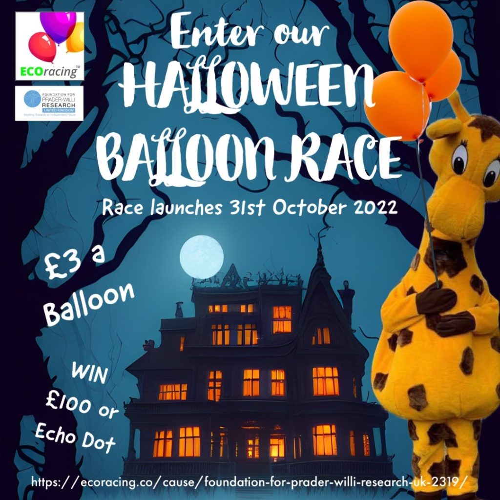 Enter our Halloween Balloon Race before 31st October 2022 for your chance to win £100 or an Amazon Echo Dot and also raise funds for PWS Research.