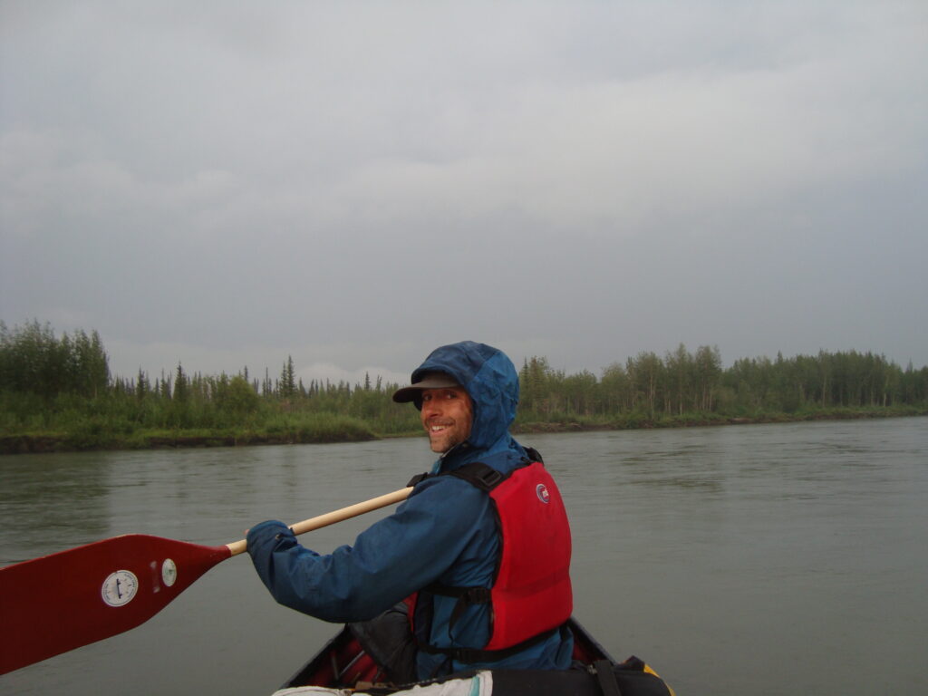 On the challenging front, the river was more difficult than we anticipated. Quite simply, the interior of Alaska can be an inhospitable place and it ultimately it becomes very clear why people don’t live there! Everything requires energy. The mosquitos were terrible for the first four or five days…they are truly difficult to describe, and I can now appreciate how they literally move the great herds. The best I can do is compare them to swarming midges in a damp remote glen in the Highlands but add in being stuck with them for days on end (whenever the wind dies down on or off the river) and add in the fact mosquitos can bite through t-shirts. Then add in near 30 degree heat when all you want to wear is a t shirt and shorts (but you can’t)…