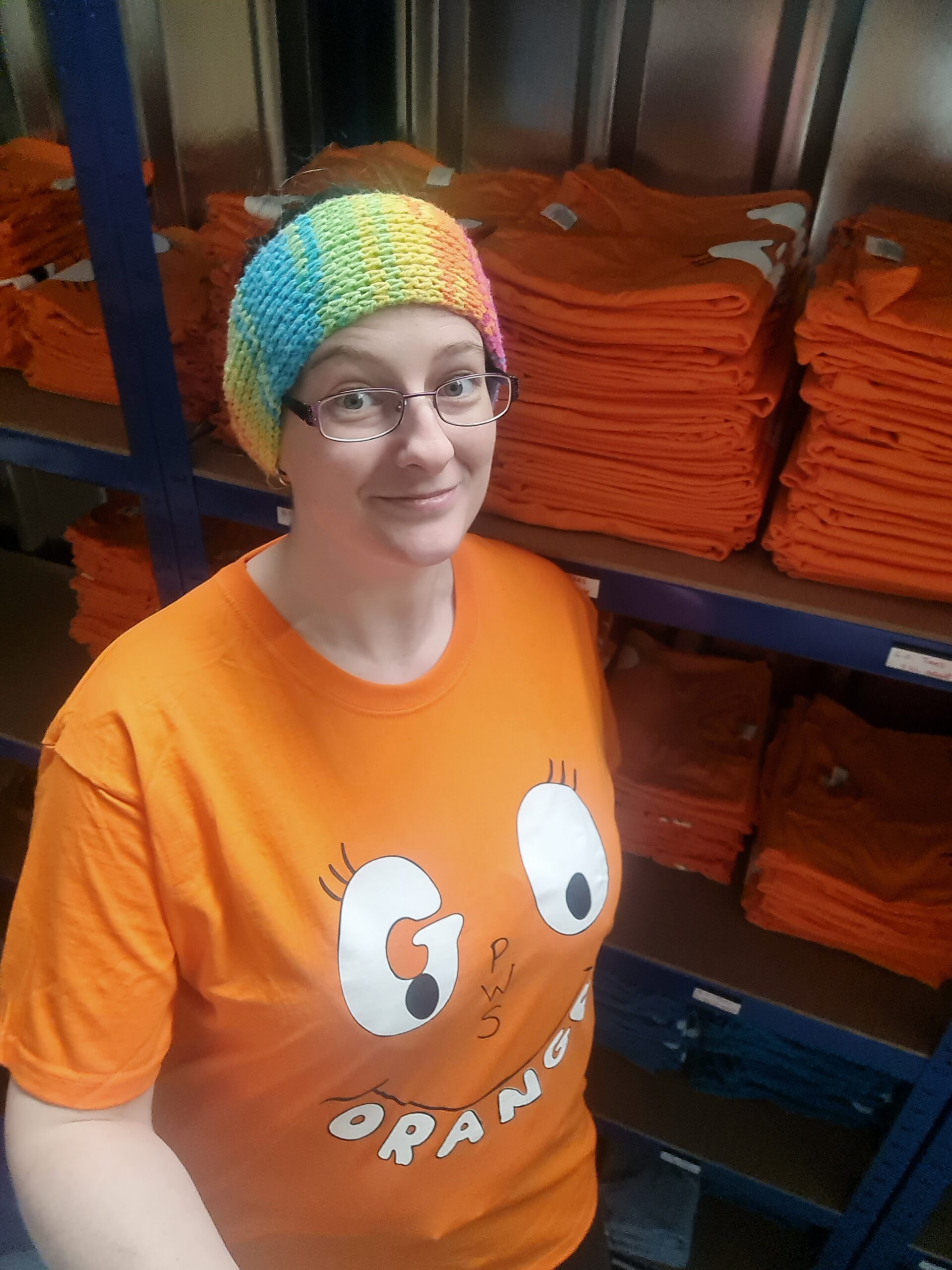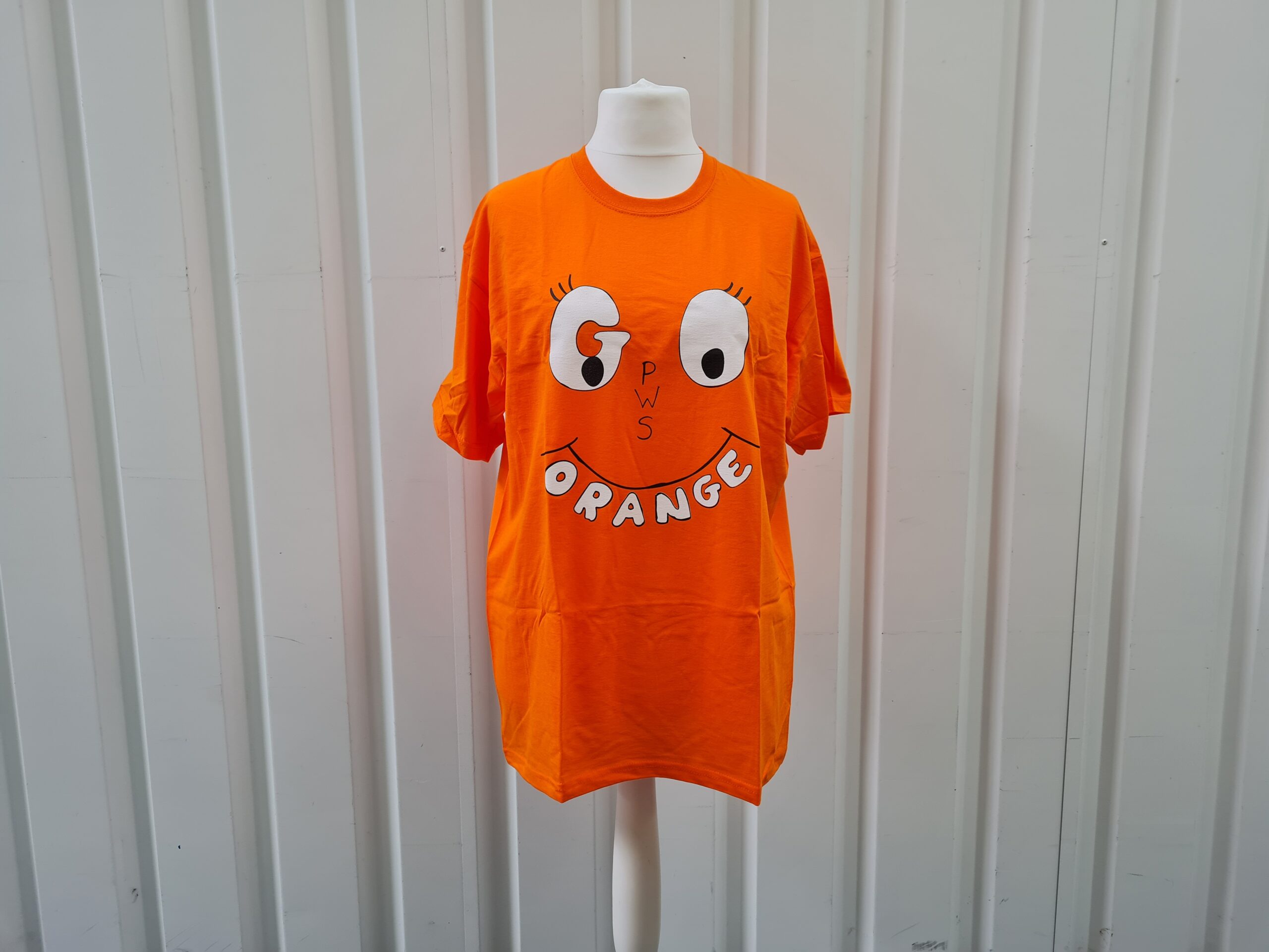 Orange T-Shirt with durable pressed on Go Orange wording and eyes on the front and the FPWR UK logo on the back.